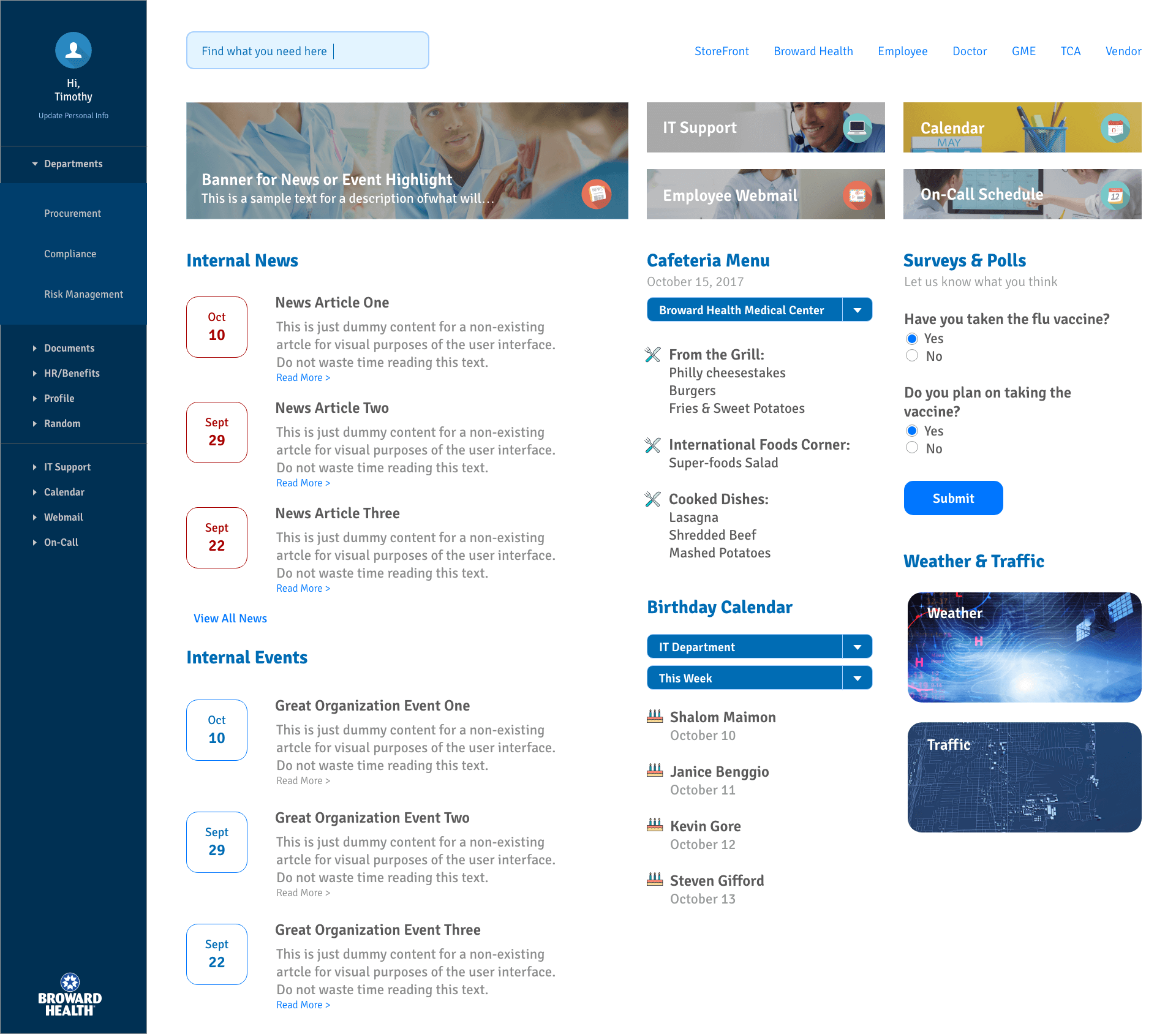 When I joined Broward Health as the Web Master and Lead Designer, I saw an opportunity to transform their digital presence into a more user-centered and cohesive platform. The organization’s websites served as vital tools for patients, employees, and vendors, but they required significant improvements in functionality, accessibility, personalization, and design consistency.